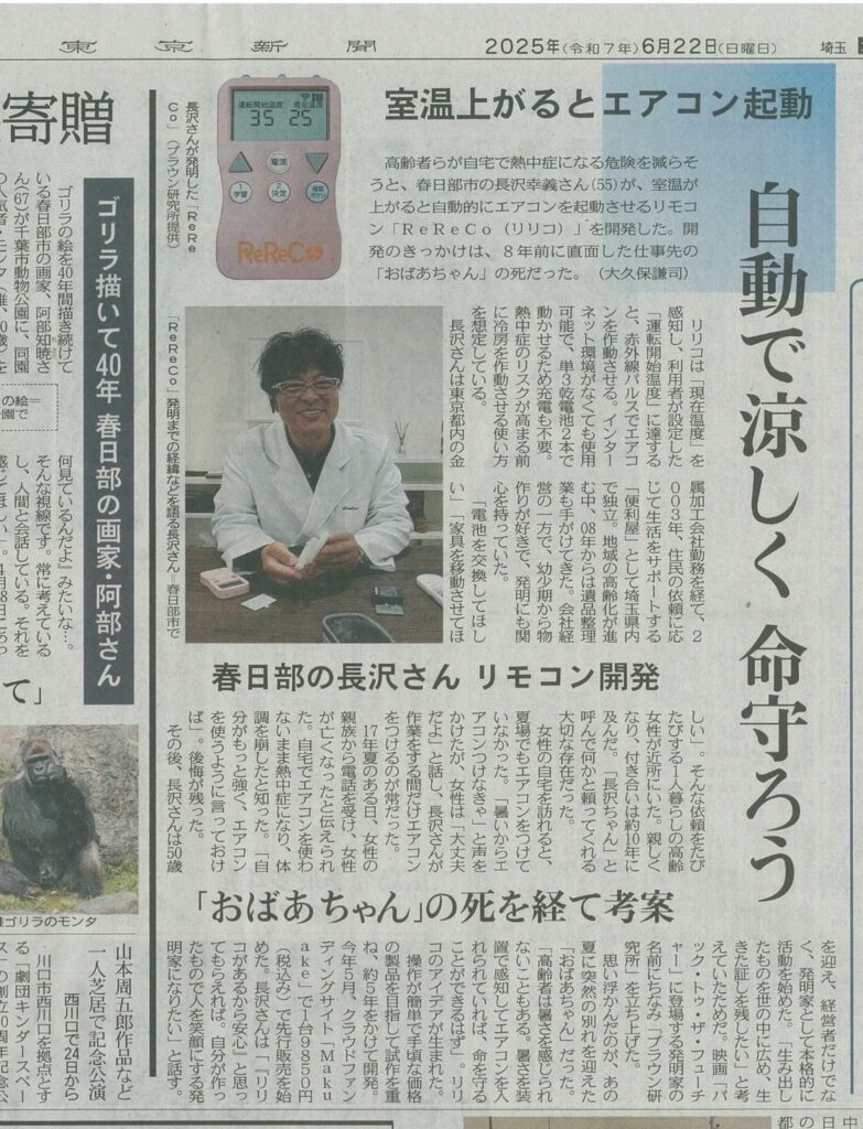 新聞に掲載されたことで、より多くの方に ReReCo の存在と「家庭内での熱中症予防の大切さ」を知っていただけるきっかけになりました。