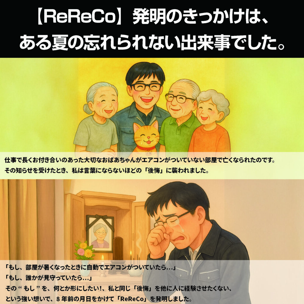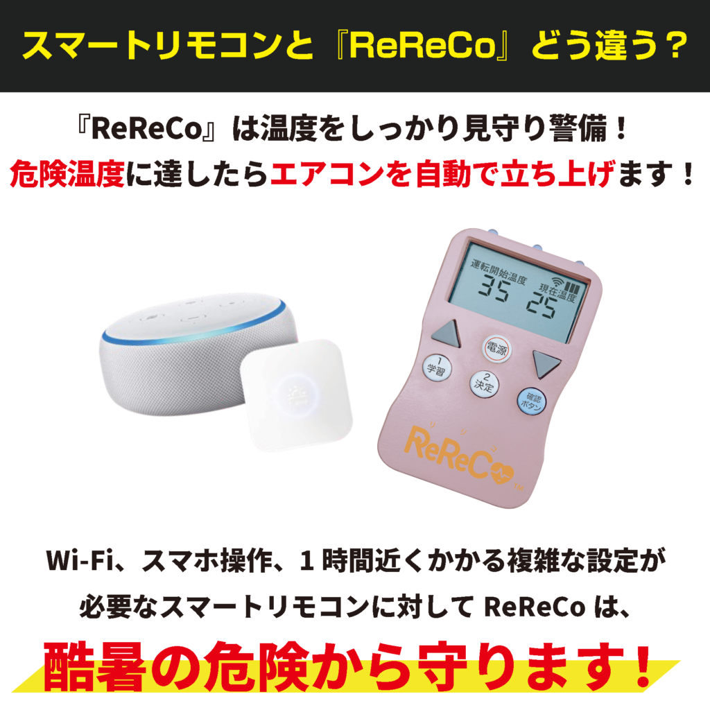 「ReReCo」は、室内温度を見守り、設定温度を超えると自動でエアコンを立ち上げる新発明のリモコン。